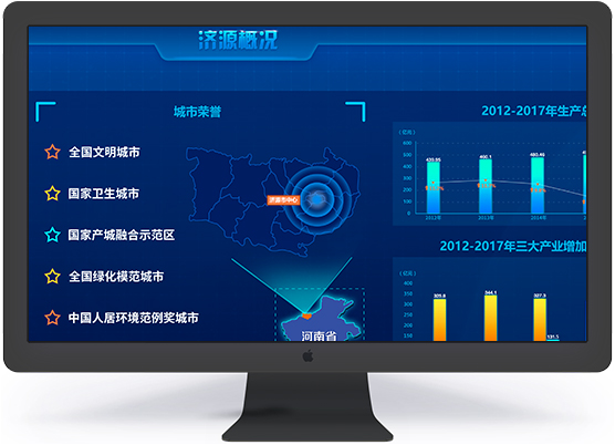 智慧城市指挥中心是智慧城市规划及管理的高度智慧化体现,是城市管理的大脑, 该项目包括硬件工程、装修工程、软件工程三大模块,通过综合显示大屏、领导舱、移动端三大载体对济源智慧城市进行集中化建设,并基于政务大数据分析、物联网技术、平安城市及雪亮工程等管理手段实现业务数据 化、数据智慧化、智慧可视化的城市管理。